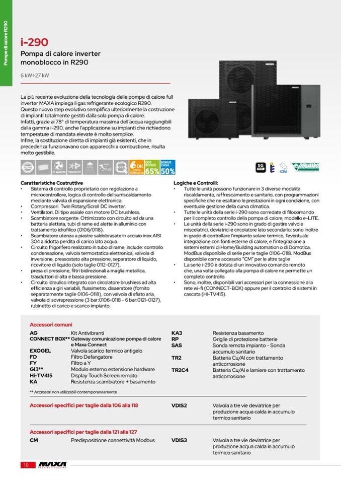 inverter MAXA impiega il gas refrigerante ecologico R290.