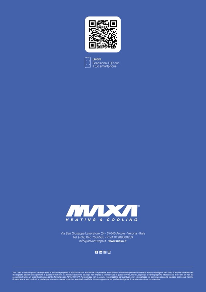 Tutti i dati e i testi di questo catalogo sono di esclusiva proprietà di ADVANTIX SPA. ADVANTIX SPA potrebbe avere brevetti o domande pendenti di brevetti, marchi, copyright o altri diritti di proprietà intellettuale
