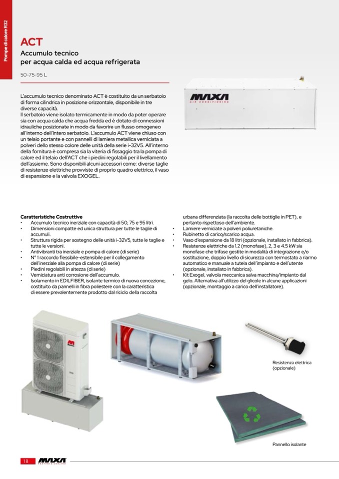 Accumulo tecnico inerziale con capacità di 50, 75 e 95 litri.
