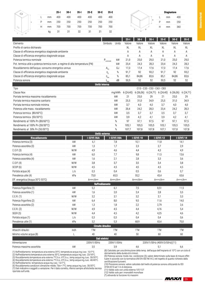 (1) Raffreddamento: temperatura aria esterna 35°C; temperatura acqua ing./usc. 12/7°C.