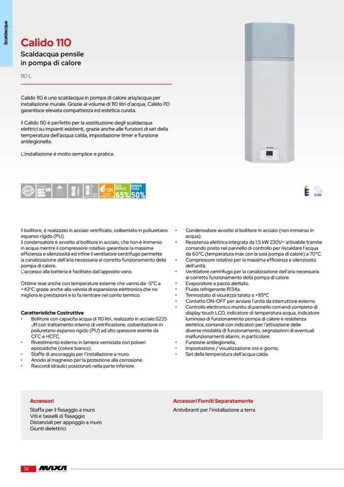 installazione murale. Grazie al volume di 110 litri d’acqua, Calido 110