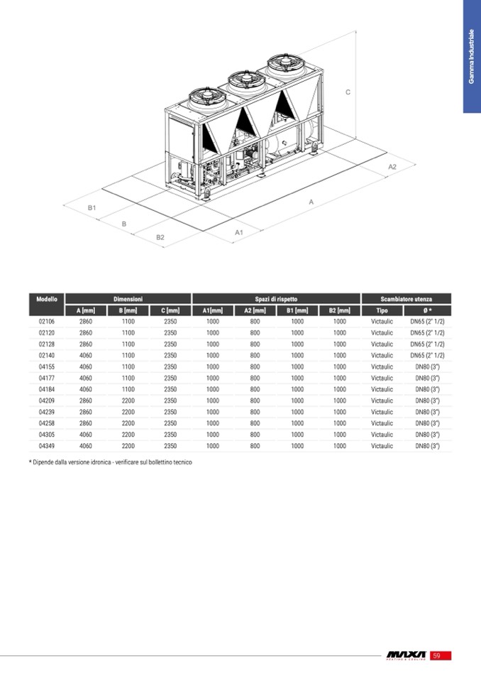 * Dipende dalla versione idronica - verificare sul bollettino tecnico