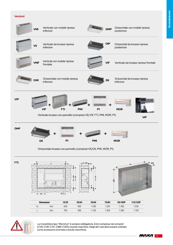 La morsettiera tipo “Mammut” è sempre obbligatoria. Ed è compresa nei comandi