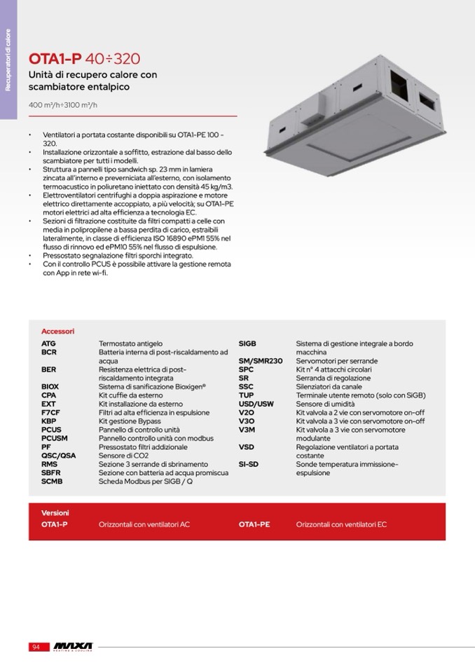 elettrico direttamente accoppiato, a più velocità; su OTA1-PE