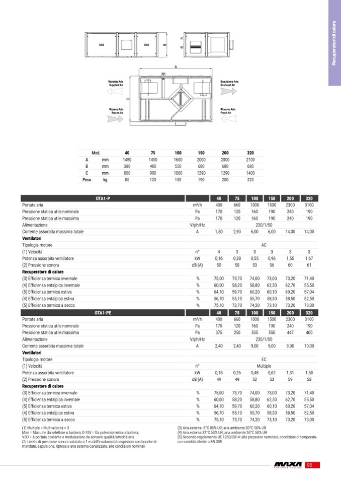 (4) Aria esterna 32°C 50% UR; aria ambiente 26°C 50% UR