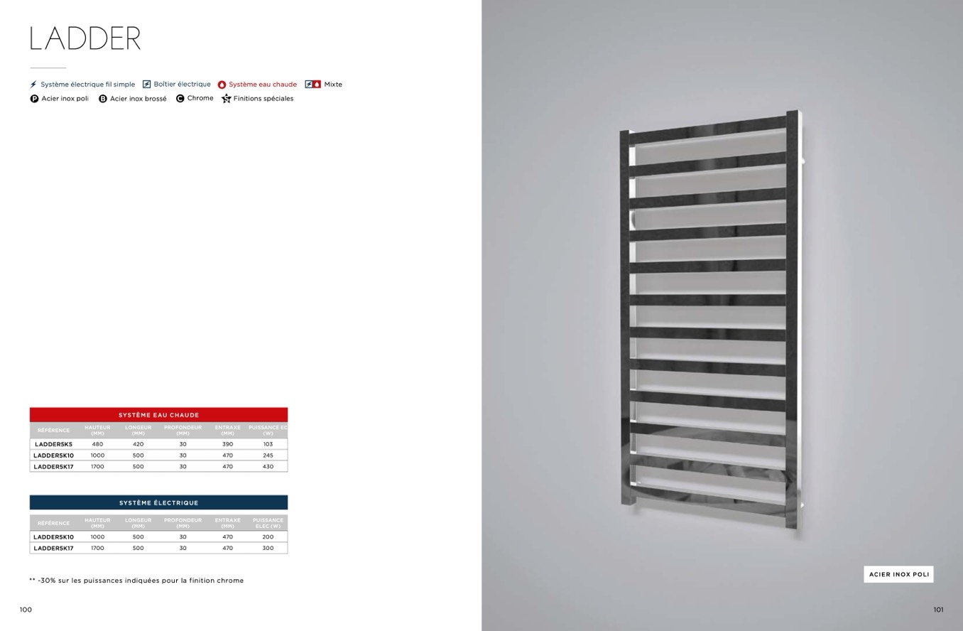 ** -30% sur les puissances indiquées pour la finition chrome