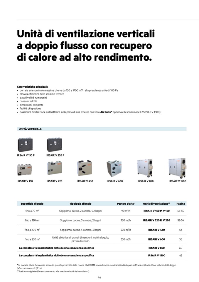 *La portata d'aria è calcolata secondo quanto prescritto dalla norma UNI 10339, considerando un ricambio d'aria pari a 0,5 volumi/h riferito al volume dell'alloggio