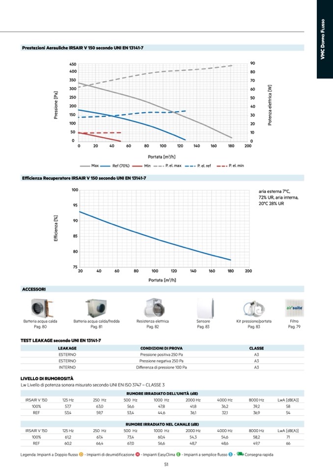 Prestazioni Aerauliche IRSAIR V 150 secondo UNI EN 13141-7