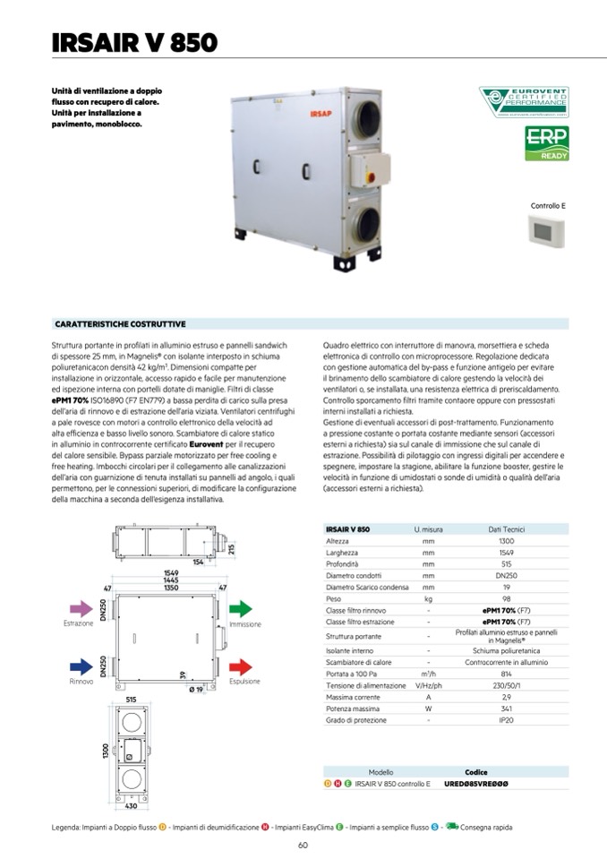 Legenda: Impianti a Doppio flusso D - Impianti di deumidificazione H - Impianti EasyClima E - Impianti a semplice flusso S -