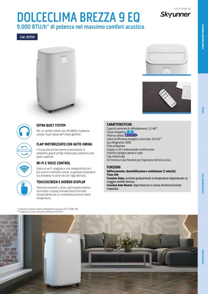* Condizioni di prova: potenza refrigerante massima (35°C / 80% UR).