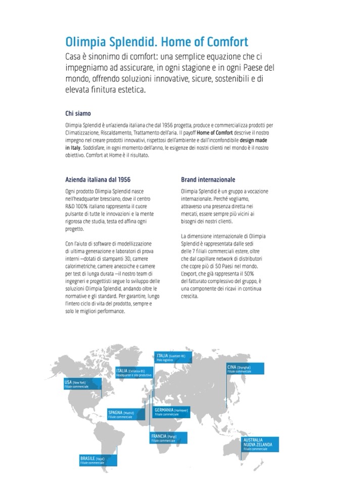 Olimpia Splendid è un’azienda italiana che dal 1956 progetta, produce e commercializza prodotti per