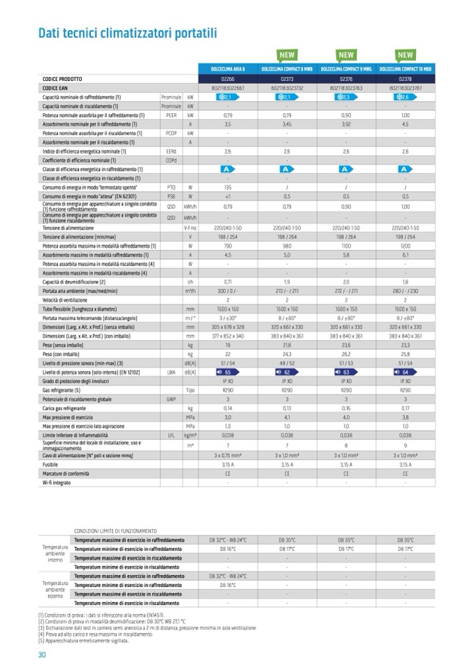 (1) Condizioni di prova: i dati si riferiscono alla norma EN14511.