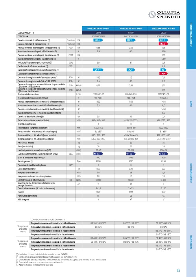 (1) Condizioni di prova: i dati si riferiscono alla norma EN14511.