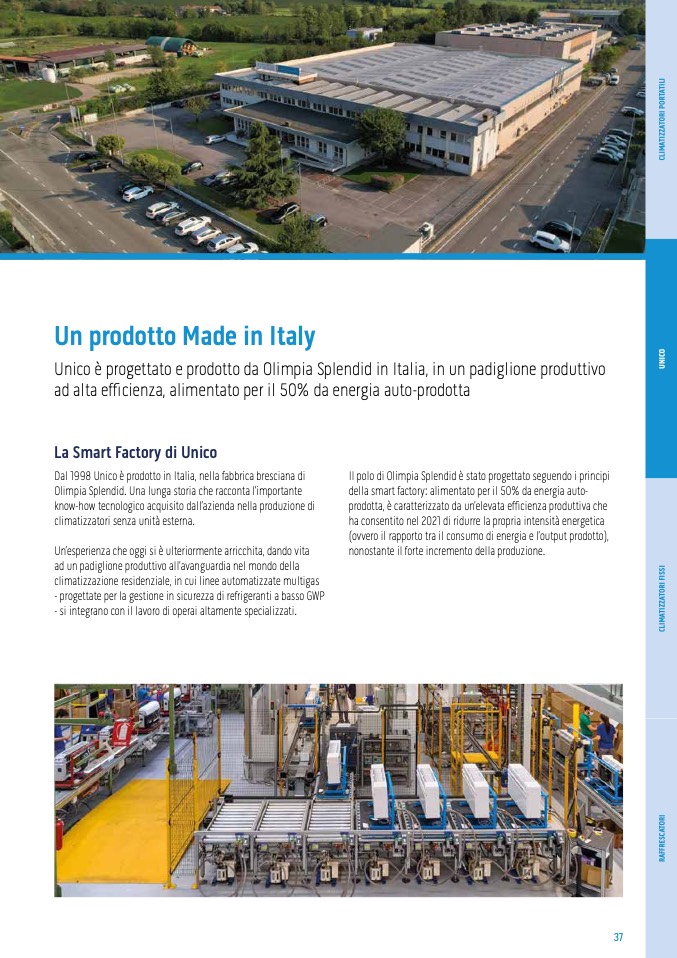 Unico è progettato e prodotto da Olimpia Splendid in Italia, in un padiglione produttivo