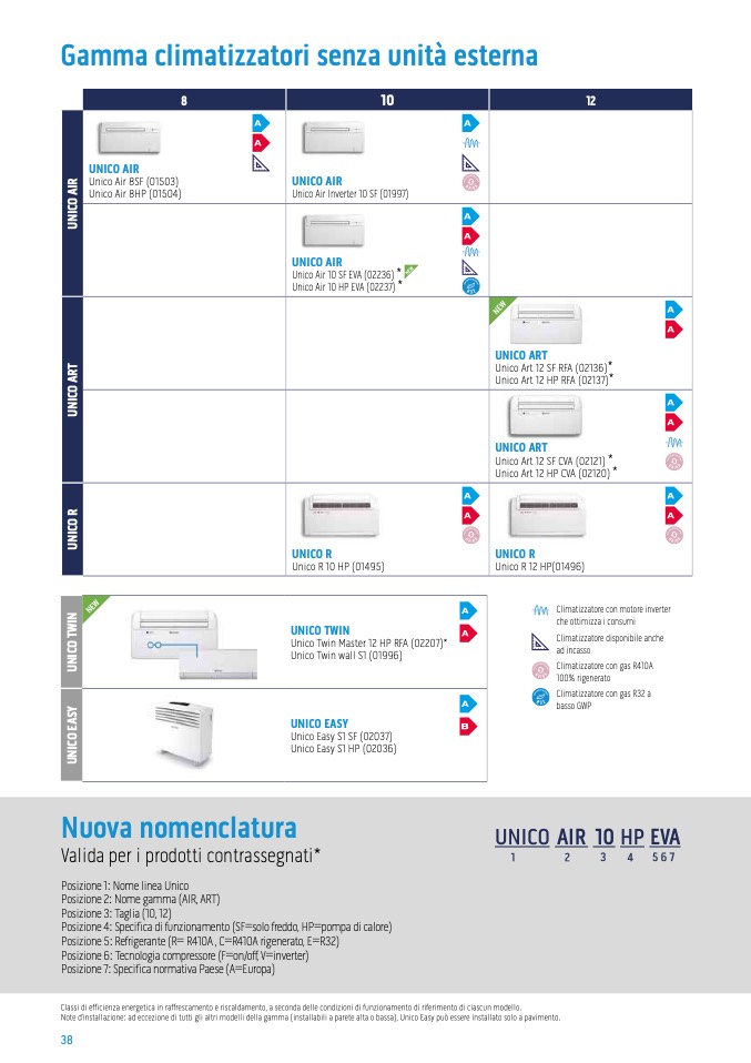 Classi di efficienza energetica in raffrescamento e riscaldamento, a seconda delle condizioni di funzionamento di riferimento di ciascun modello.