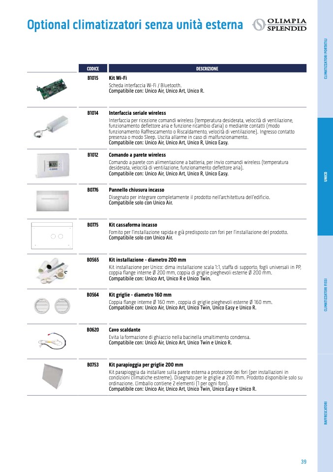 Compatibile con: Unico Air, Unico Art, Unico Twin e Unico R.