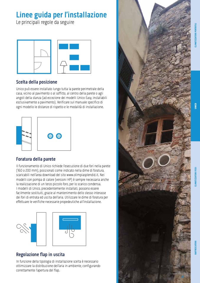 Il funzionamento di Unico richiede l’esecuzione di due fori nella parete