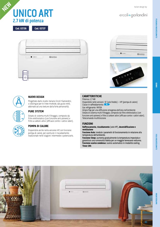 Disponibile nelle versioni: SF (solo freddo) – HP (pompa di calore)