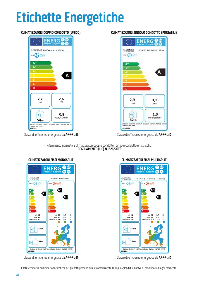 I dati tecnici e le combinazioni estetiche dei prodotti possono subire cambiamenti. Olimpia Splendid si riserva di modificarli in ogni momento.