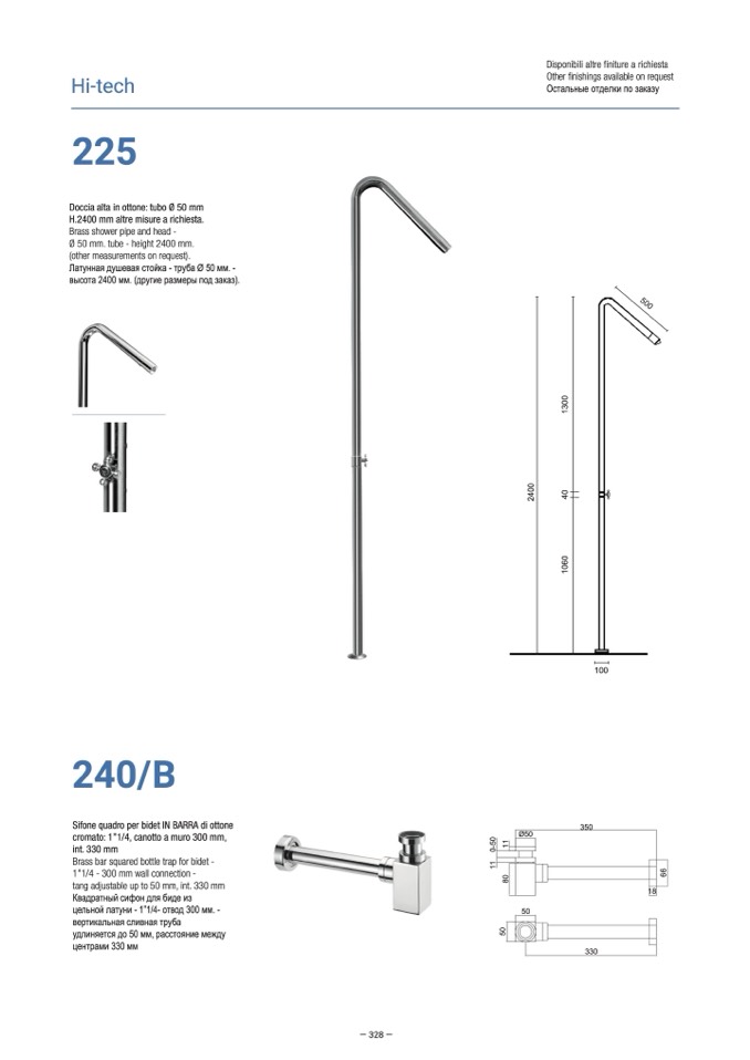 Doccia alta in ottone: tubo Ø 50 mm