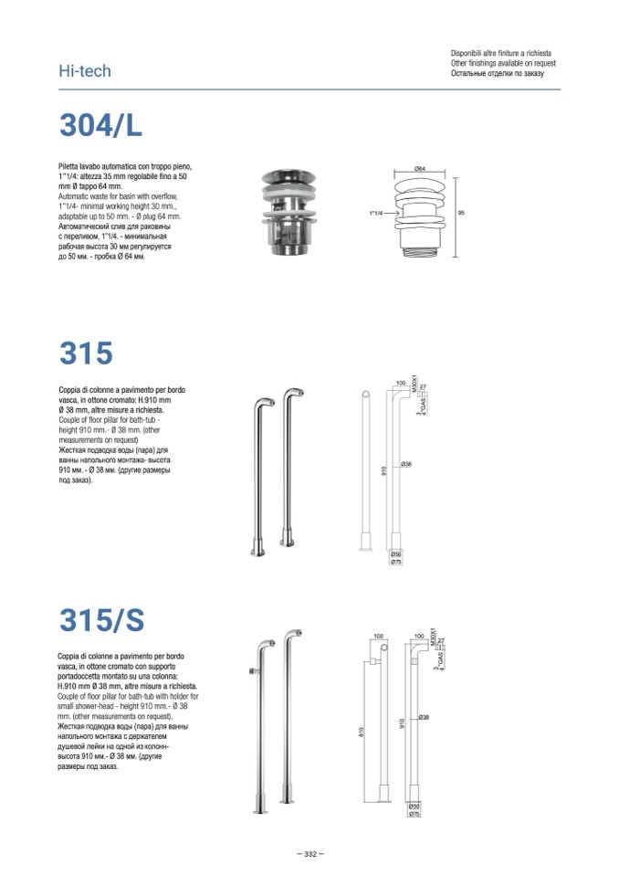height 910 mm.- Ø 38 mm. (other