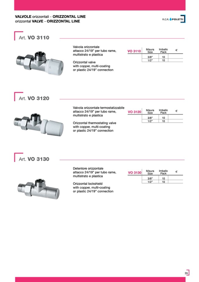 VALVOLE orizzontali - ORIZZONTAL LINE