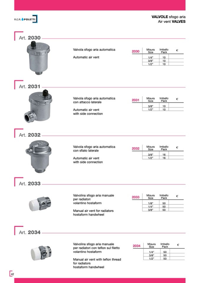 VALVOLE sfogo aria