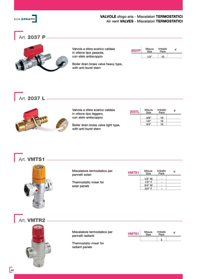 Air vent VALVES - Miscelatori TERMOSTATICI