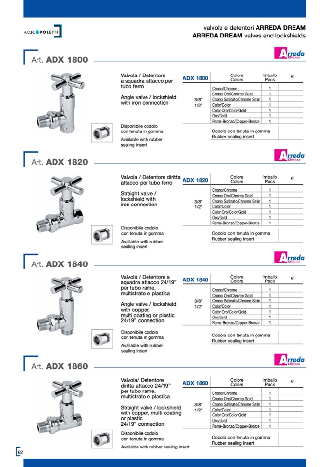 valvole e detentori ARREDA DREAM