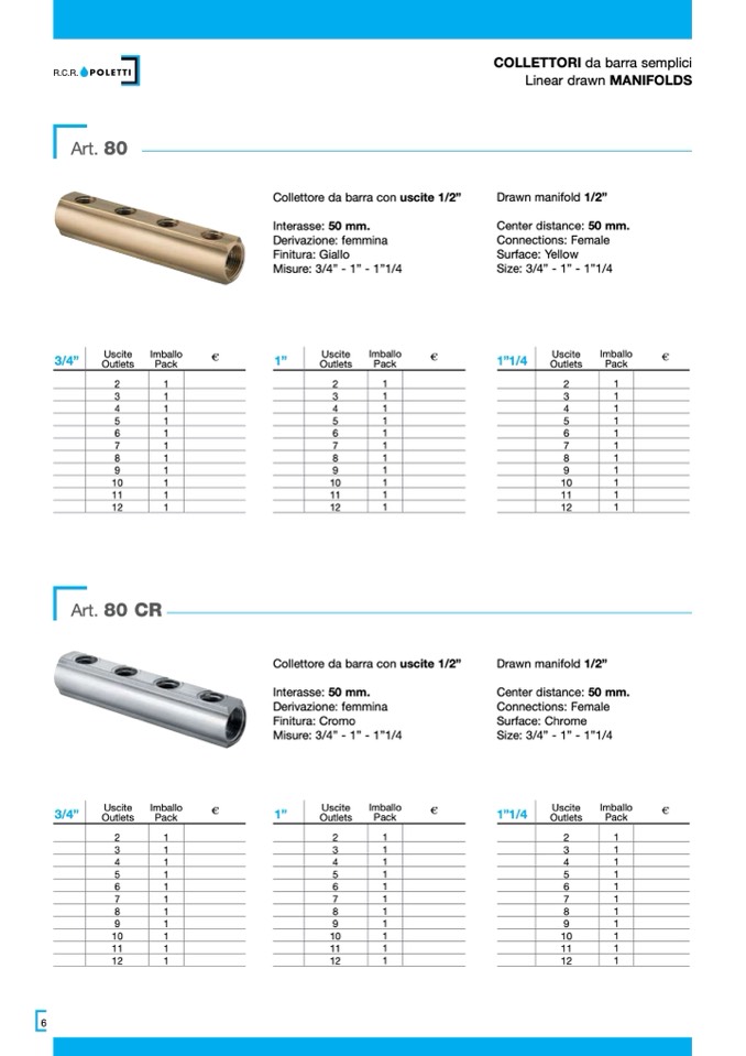 Collettore da barra con uscite 1/2”