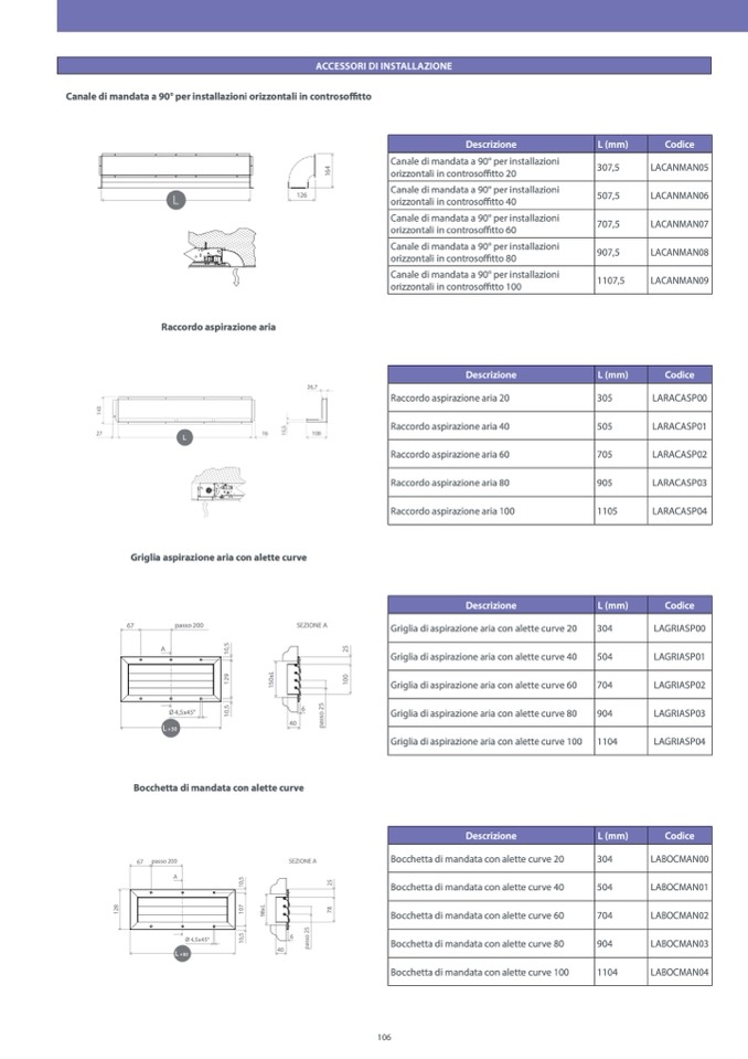 Canale di mandata a 90° per installazioni orizzontali in controso