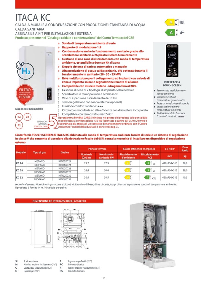 modello Itaca a condensazione <35 kW fabbricate a partire dal 01/01/2019 ed