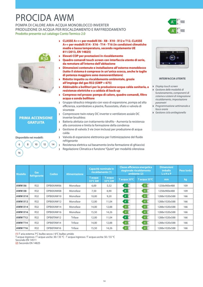 A++ per modelli X14 - X16 - T14 - T16 (in condizioni climatiche