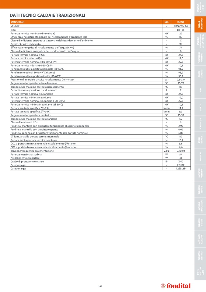 Rendimento utile al 30% (47°C ritorno)