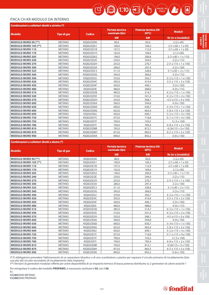 (**) Versioni di generatori modulari offerte per avere disponibilit