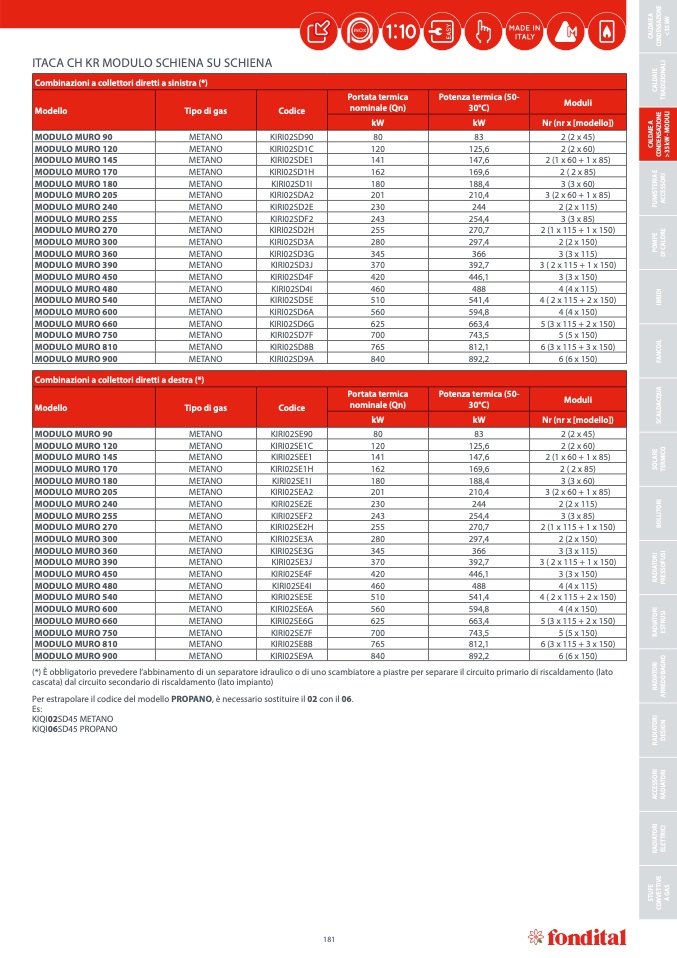 Combinazioni a collettori diretti a destra (*)