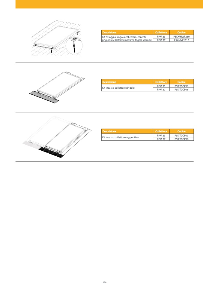 Kit fissaggio singolo collettore, con viti