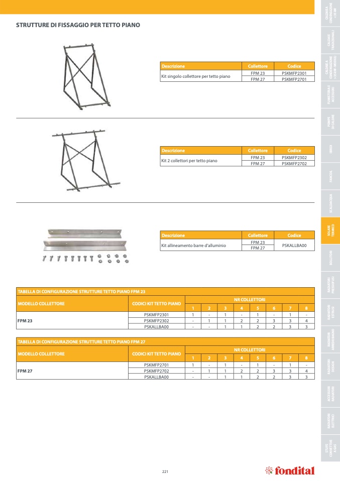 TABELLA DI CONFIGURAZIONE STRUTTURE TETTO PIANO FPM 27