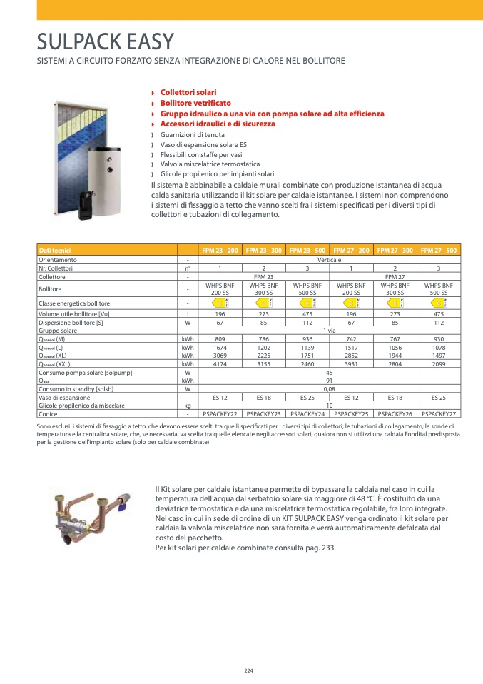 temperatura e la centralina solare, che, se necessaria, va scelta tra quelle elencate negli accessori solari, qualora non si utilizzi una caldaia Fondital predisposta