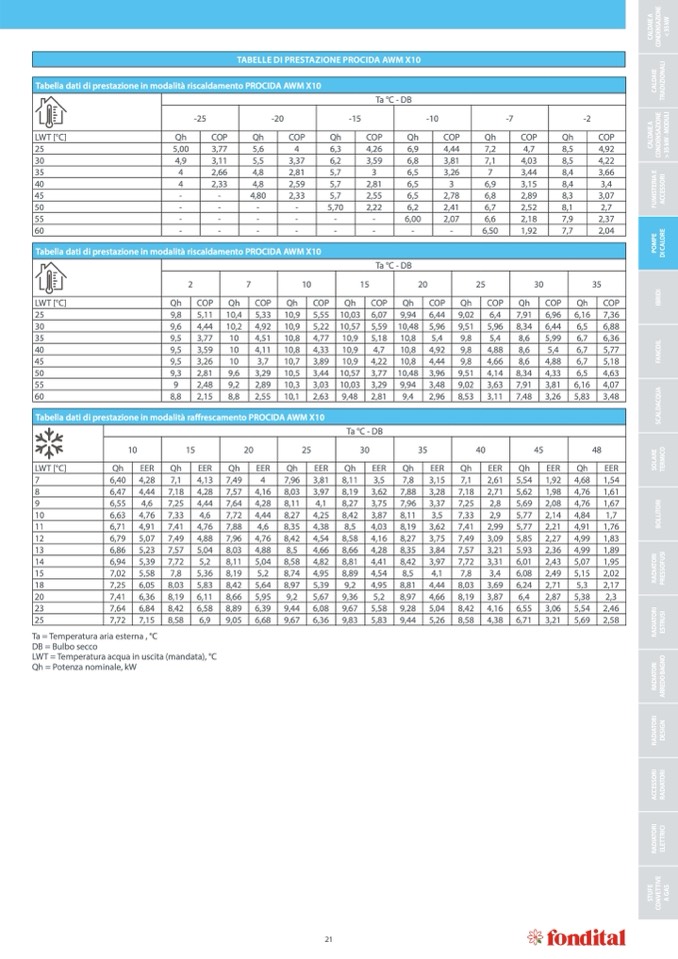 TABELLE DI PRESTAZIONE PROCIDA AWM X10