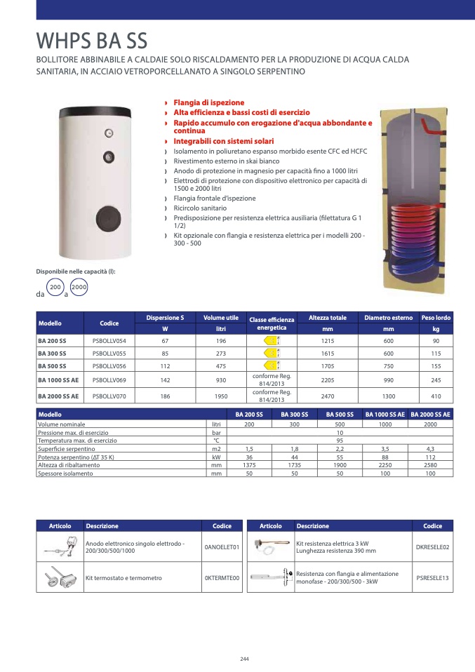 Kit opzionale con flangia e resistenza elettrica per i modelli 200 -