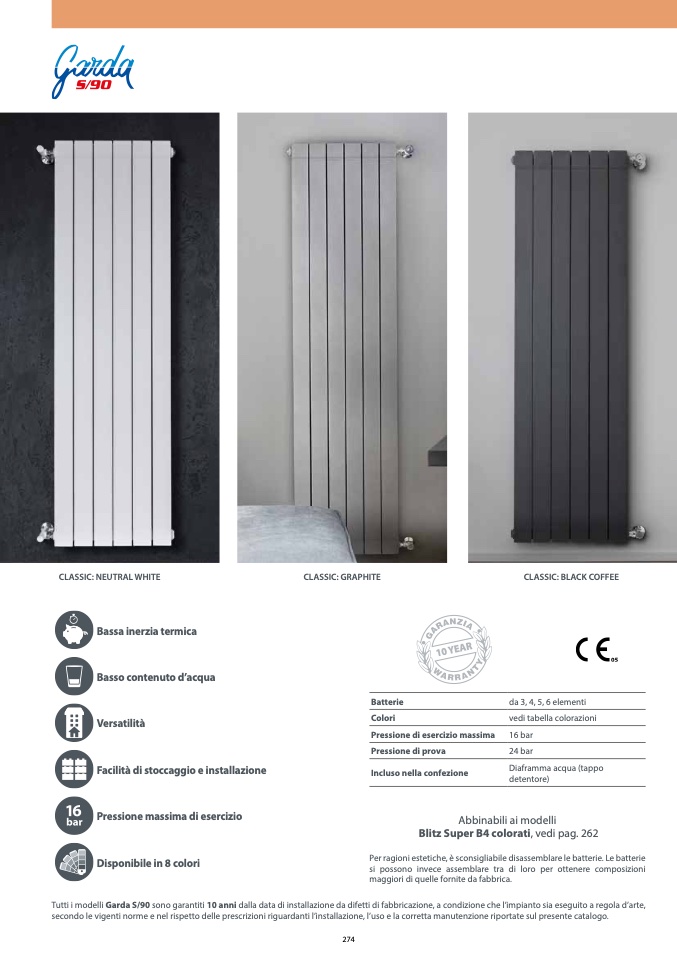 Tutti i modelli Garda S/90 sono garantiti 10 anni dalla data di installazione da difetti di fabbricazione, a condizione che l’impianto sia eseguito a regola d’arte,