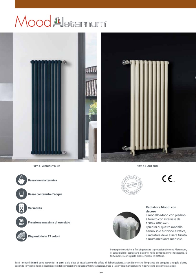 Tutti i modelli Mood sono garantiti 15 anni dalla data di installazione da difetti di fabbricazione, a condizione che l’impianto sia eseguito a regola d’arte,