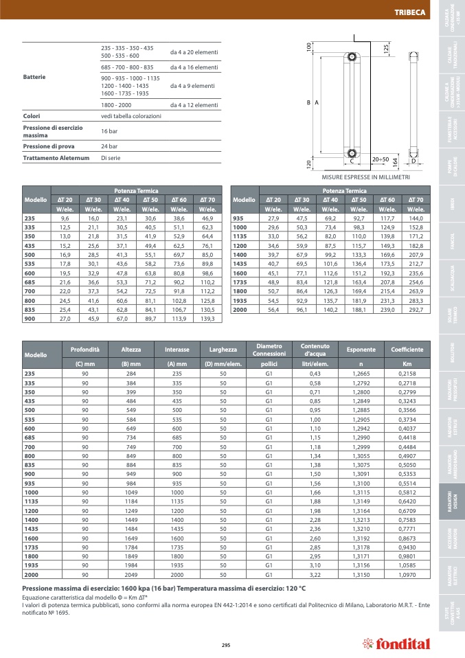 I valori di potenza termica pubblicati, sono conformi alla norma europea EN 442-1:2014 e sono certi