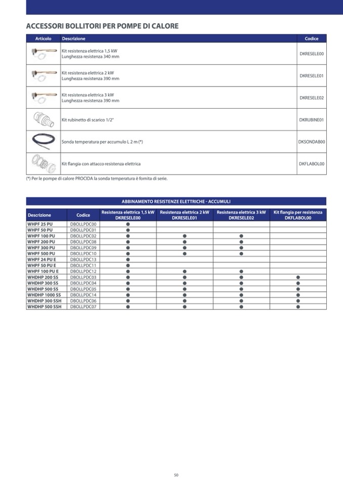 (*) Per le pompe di calore PROCIDA la sonda temperatura