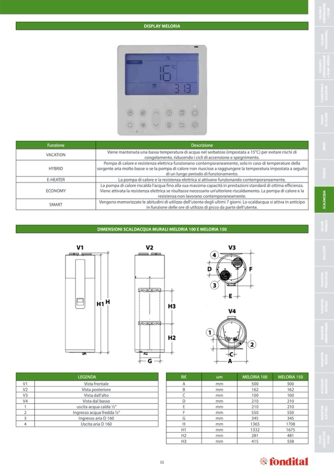 DIMENSIONI SCALDACQUA MURALI MELORIA 100 E MELORIA 150