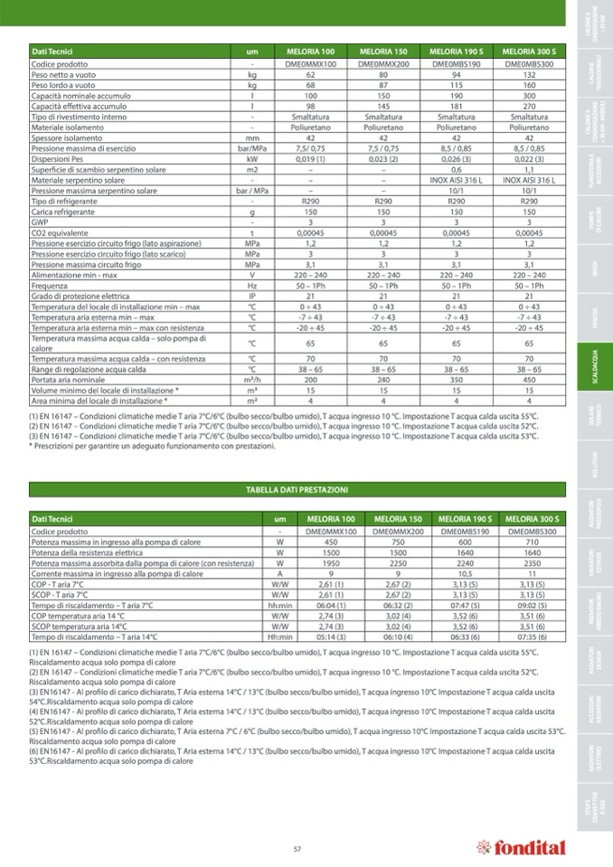 (3) EN 16147 – Condizioni climatiche medie T aria 7°C/6°C (bulbo secco/bulbo umido), T acqua ingresso 10 °C. Impostazione T acqua calda uscita 53°C.