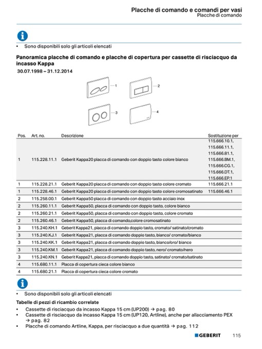 • Sono disponibili solo gli artico•li elPelnacacthie di comando Artline, Kappa, per risciacquo a due quantità