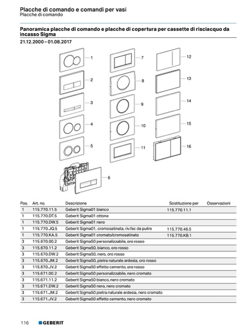 Panoramica placche di comando e placche di copertura per cassette di risciacquo da