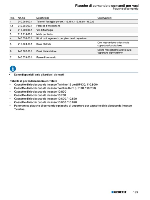 Comandi per WC con azionamento pneumatico del risciacquo, risciacquo ad una quantità, pulsante